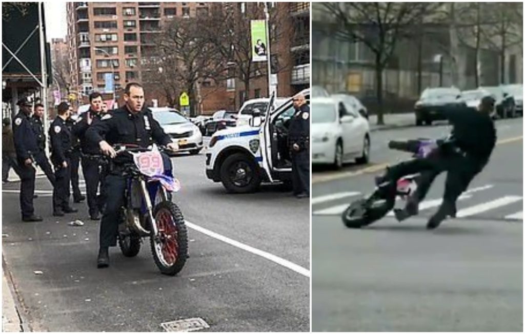 NYPD Cops Crashes Seized Dirtbike in the Middle of the Street pic.twitter.com/aMILDUBuuR