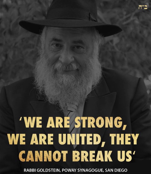 In the minutes after the gunman fled the scene of the shooting that killed a woman inside his Southern California synagogue, a wounded Rabbi Goldstein wrapped his bloodied hand in a Tallis and addressed the panicked congregation, vowing to stay strong in the face of yet another deadly attack in a house of worship.