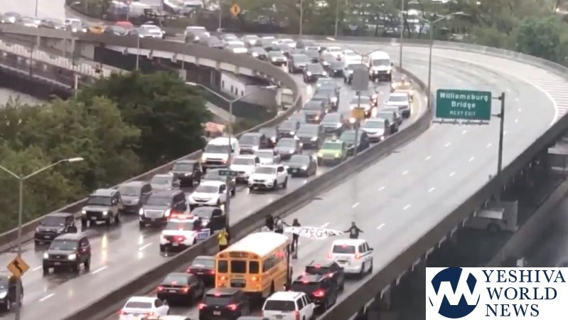 Traffic cameras showed a small number of demonstrators blocking FDR Drive at 25th Street.