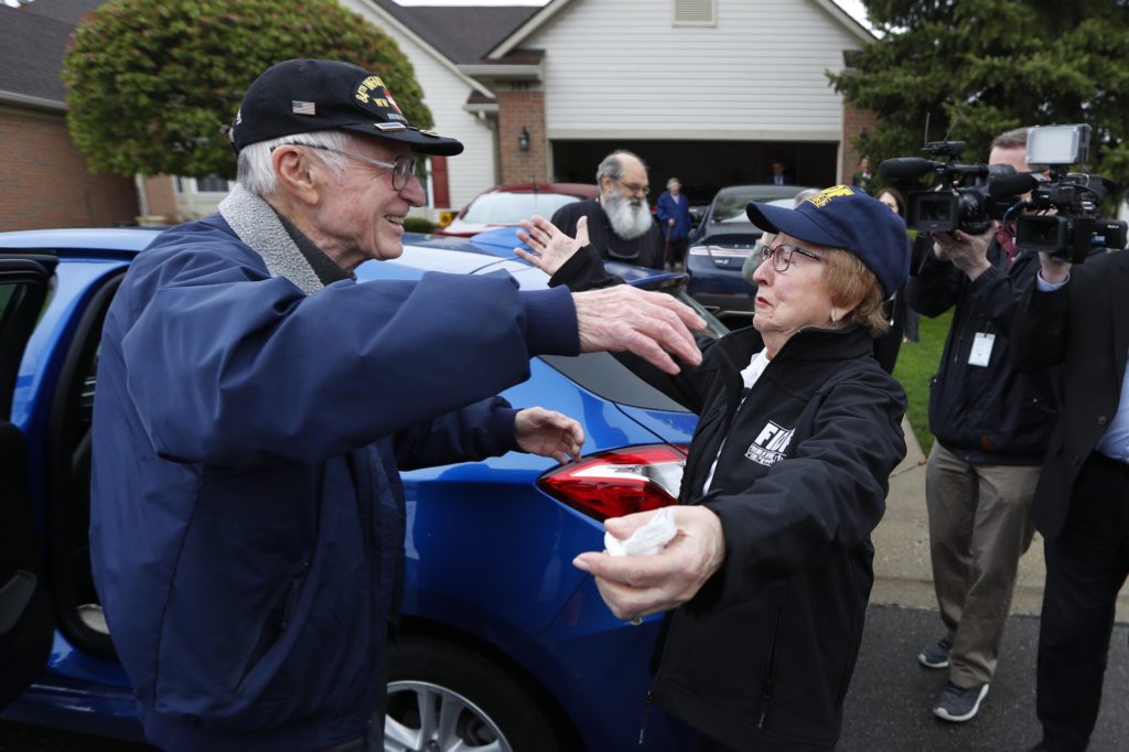 The two then went inside Klisman’s house in Commerce Township, sat on the living room couch and chatted with reporters about their experiences during World War II.