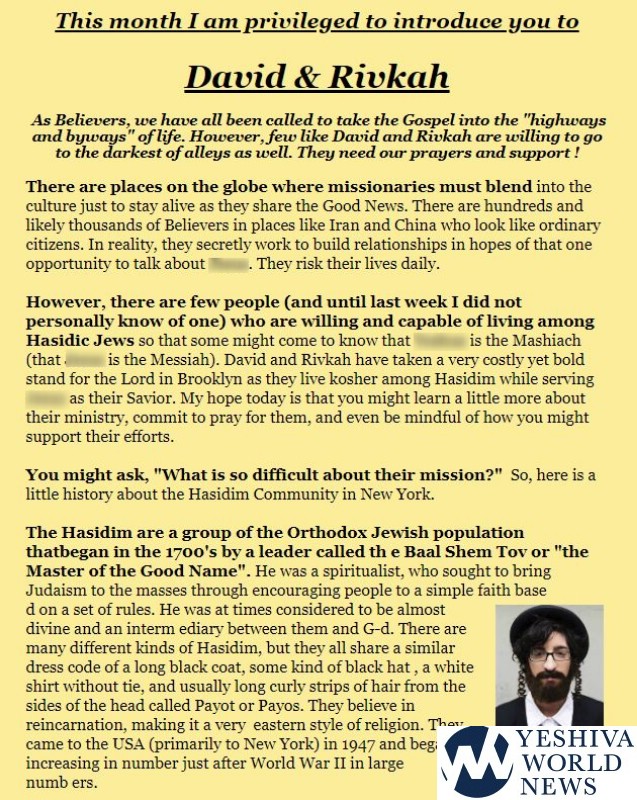 A couple who have recently moved to a Jewish neighborhood in Chicago has been exposed to be non-Jews posing as Orthodox Jews, with the mission to influence others.