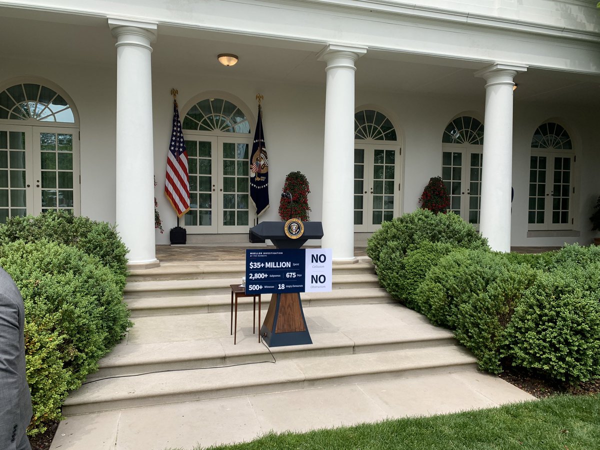 LOL – “A surprise presser” with printed cards about the cost of the Mueller investigation.