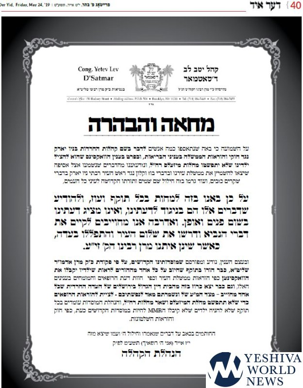 Thank you, Satmar leadership. And thank you, Yeshiva World News.