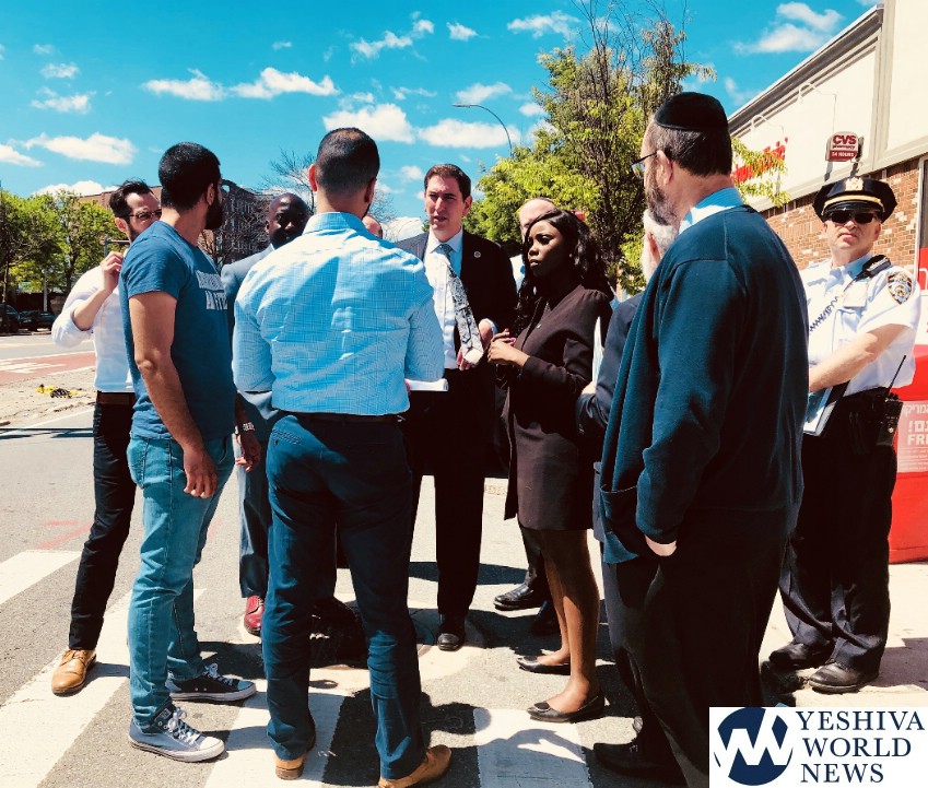 Councilmember-elect Farah Louis, who represents the area, convened the meeting along with Councilmember Chaim Deutsch, Congressmember Yvette Clarke, Assemblymember Helene Weinstein, and State Senators Simcha Felder and Roxanne Persuad. Also in attendance were Brooklyn DOT Commissioner Keith Bray; officials from the NYPD’s 61, 63, and 70 precincts; an NYPD Traffic Department Supervisor; and representatives of NYPD Brooklyn South Chief Brian Conroy.