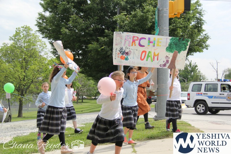 The event continued with a joyous parade through Northern Parkway and Park Heights Ave with the children marching with banners and Jewish themed floats, as is a tradition on this auspicious day.
