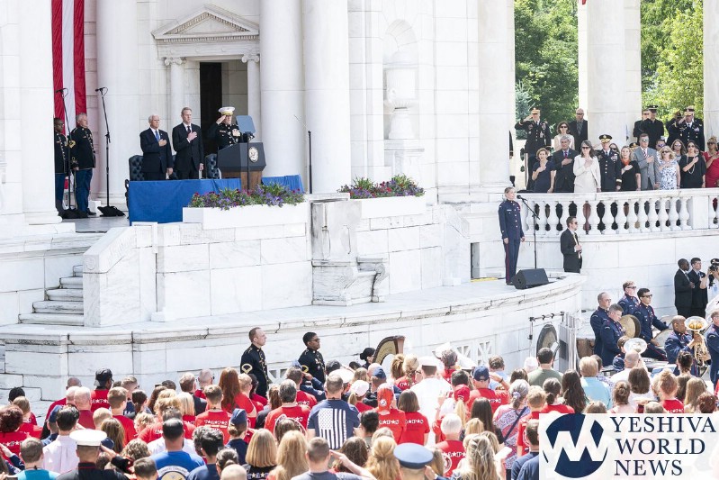 Pence placed a wreath at the Tomb of the Unknown Soldier to remember dead service members whose remains haven’t been identified and observed a moment of silence. He told Gold Star families he was honored by their presence.
