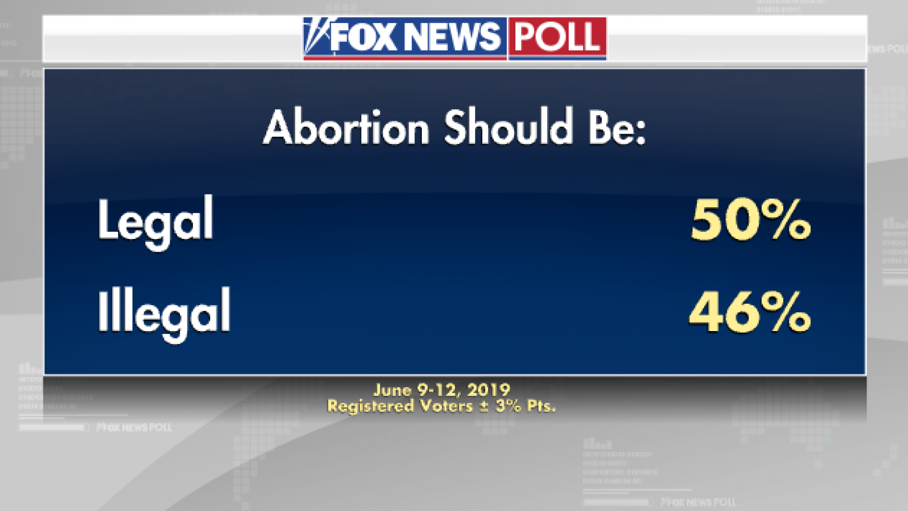 Overall, 64 percent of voters think the Supreme Court should let Roe v. Wade stand, and a 61 percent majority opposes their state passing a law similar to ones in Alabama and Georgia that ban abortion in all cases other than to save the life of the mother.