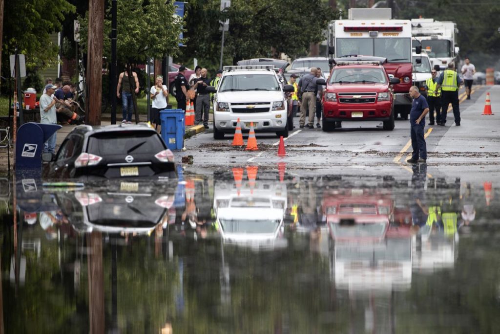 Flooding already was causing travel problems, flooding commuter train stations and forcing service to be suspended between Philadelphia and New Jersey. The Delaware River was overflowing its banks in places, and people were being rescued from high water.