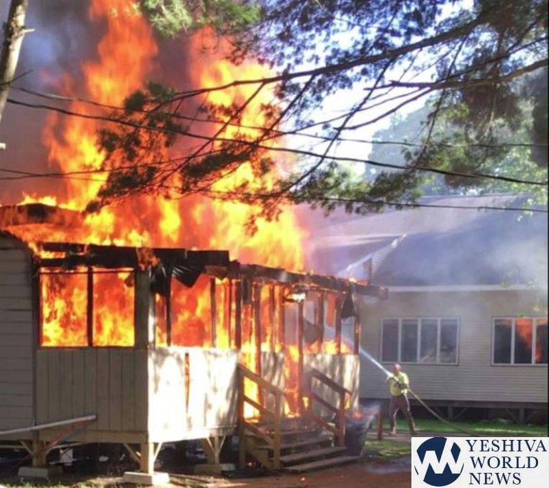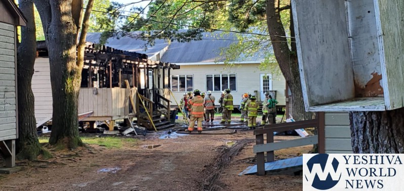 A two-alarm fire just before Shabbos destroyed two bungalows at Sanz Camp at 218 Firehouse Road in Woodbourne.