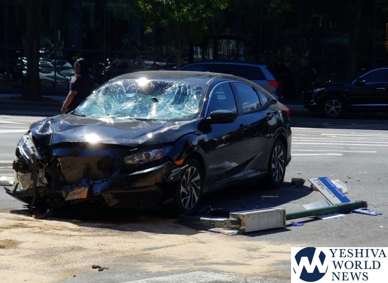 The vehicle also slammed into a utility pole, which may have also struck the woman.