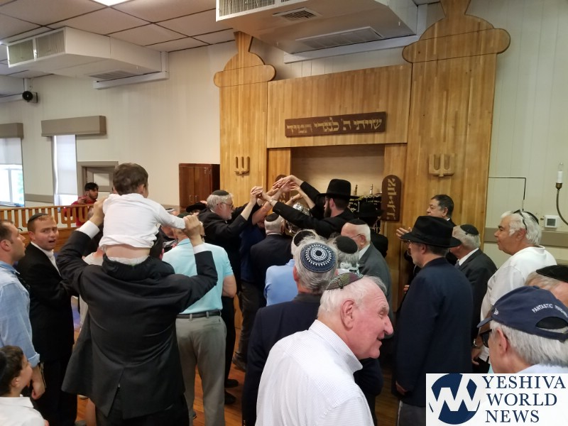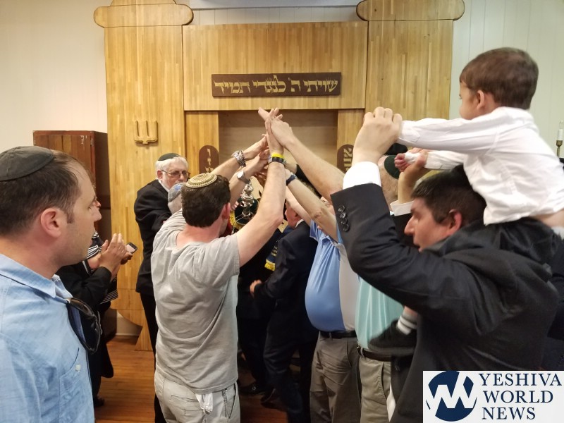 Both Schiff and Chaboty participated in the festive singing and dancing after the Torah was finished.