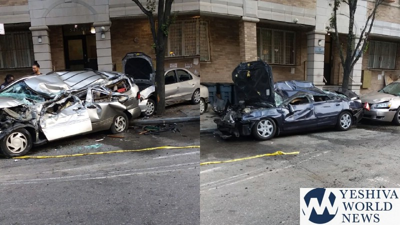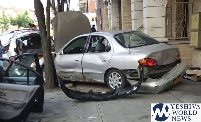 The crash was reminiscent of two incidents – both reported by YWN. One was a garbage truck crash in 2017 in Williamsburg that left 12 cars destroyed. The second garbage truck crash happened in Boro Park on 60th Street on a Shabbos morning – which left 9 cars destroyed.