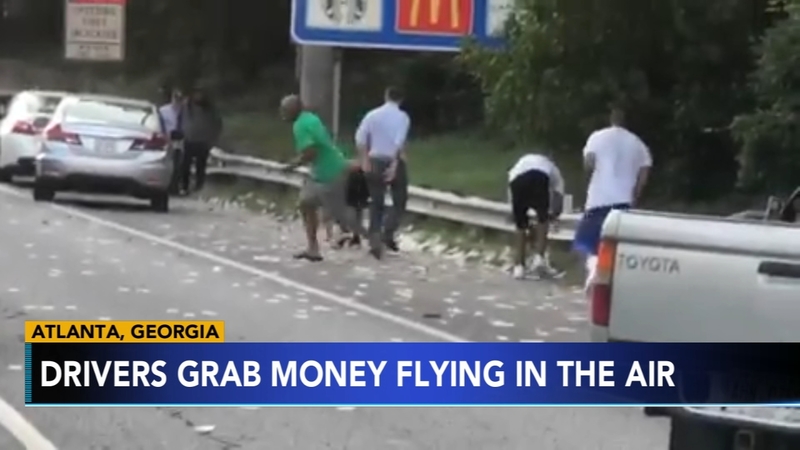 Drivers on Atlanta’s busy perimeter highway were bombarded by flying money after a door swung open on an armored truck.