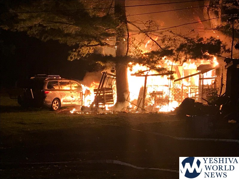 The fire started just after 2:00AM at 1010 Glen Wild Road, next door to the Skver Camp. The Woodridge Fire Department arrived on scene and immediately requested a second alarm response, after finding a mobile home and a vehicle parked next to it fully engulfed in fire.