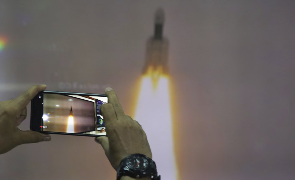 Scientists at the mission control center burst into applause as the rocket lifted off in clear weather as scheduled at 2:43 p.m. from Sriharikota in southern India. K. Sivan, head of India’s space agency, said the rocket successfully injected the spacecraft into orbit.
