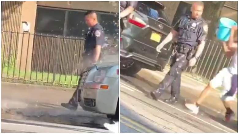 In the footage, buckets of water are hurled over two NYPD officers in Brooklyn as they walk away without taking any action. Local street thugs are seen jeering and making fun of the officers as they walk away soaked and ashamed.