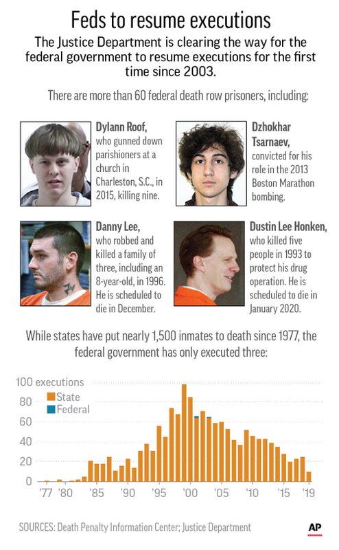 The Justice Department announced Thursday that it will resume executing death row prisoners for the first time in nearly two decades.