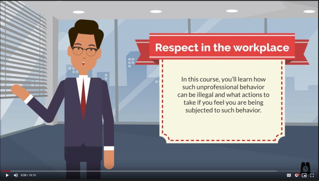 – Online training format, which allows employees to take the course in a private setting, while satisfying the interactivity requirement via answering knowledge check questions.
