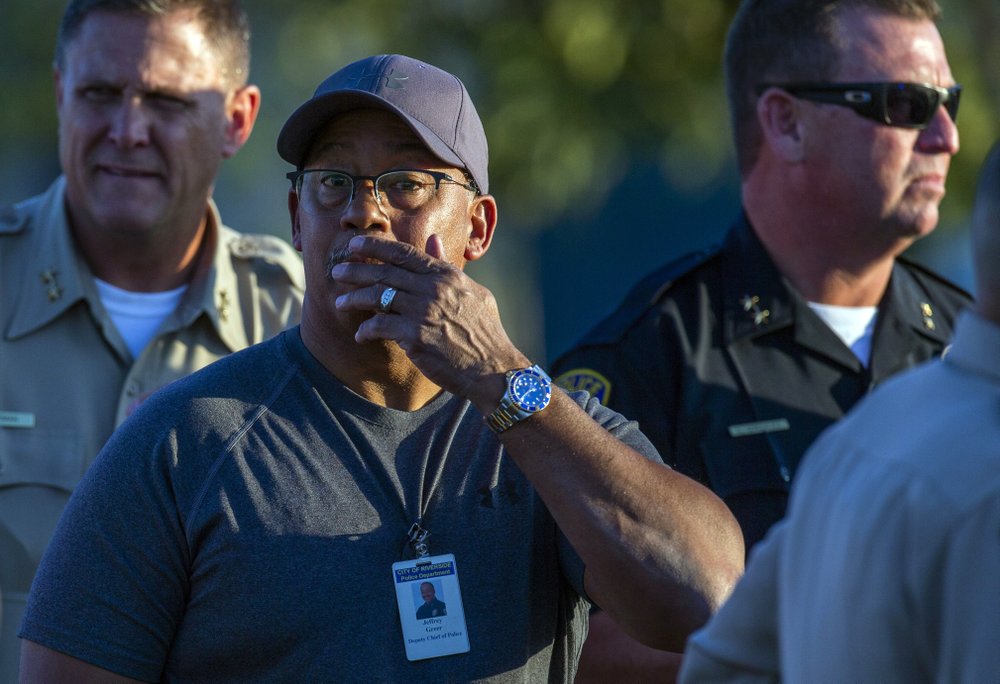 “We don’t know his motive for this crime,” Riverside Police Chief Sergio Diaz said. Investigators were still gathering evidence at the scene Tuesday morning.