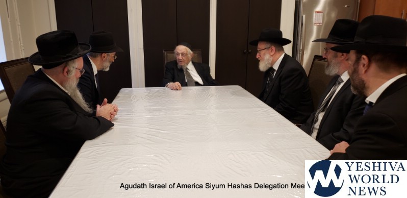 A special delegation visited the Rosh HaYeshiva, Moetzes Gedolei HaTorah member, HaRav David Feinstein to give a report and discuss 13th Global Siyum Hashas related issues.