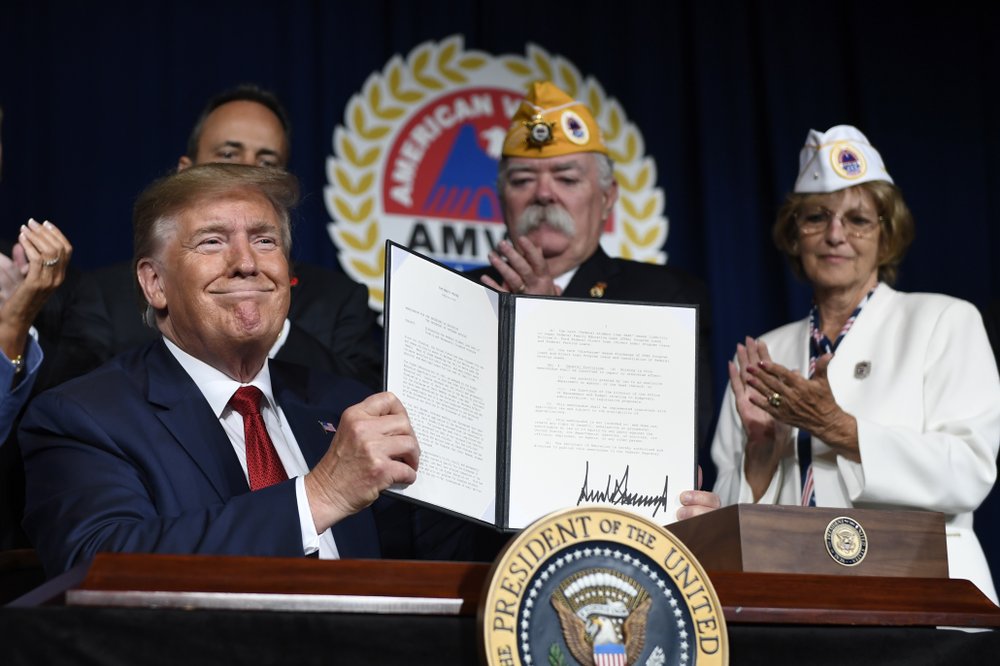 Trump’s announcement at the AMVETS national convention in Louisville elicited a loud round of applause from the crowd of more than 2,500 veterans. He signed the directive after addressing the gathering.