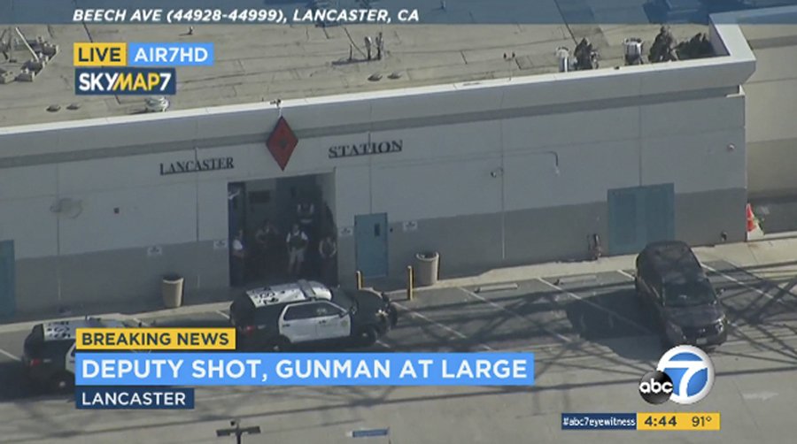 Deputies searched through the night for the sniper inside the block-long, four-story structure with many windows that overlook the sheriff’s facility in downtown Lancaster, a desert city of about 160,000 people north of Los Angeles.