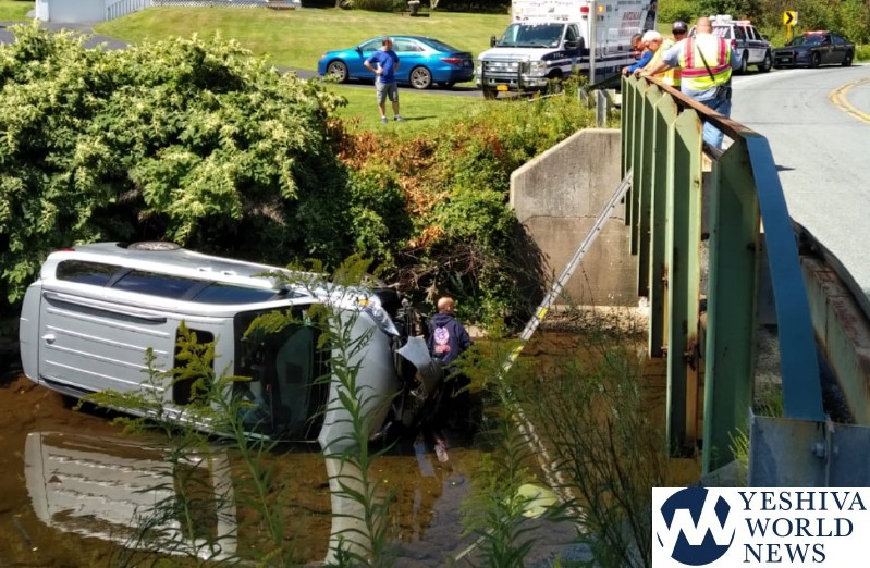 Sources tell YWN that the driver swerved to avoid a vehicle which had crossed the double-yellow lines – directly into his lane. The driver lost control, and rolled off the road and into a lake. Miraculously, the driver self-extricated from the vehicle prior to the arrival of emergency personnel.