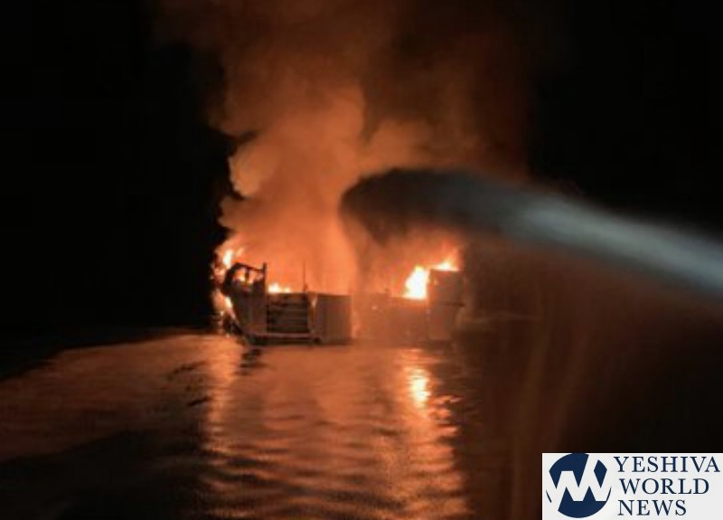 Rochester said the 75-foot (20-meter) commercial scuba diving vessel was anchored in Platts Harbor, about 20 yards (18 meters) off the northern coast of Santa Cruz Island, when the fire ignited.