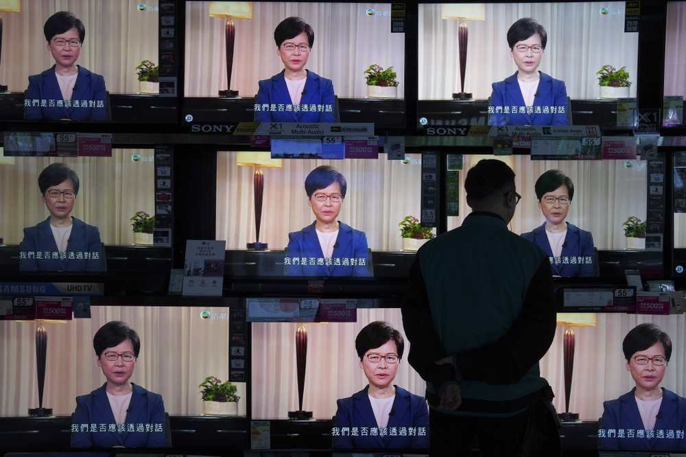 Lam said it was clear that public frustration has gone far beyond the bill and that her government will seek a dialogue with aggrieved groups to “address the discontent in society and to look for solutions.”