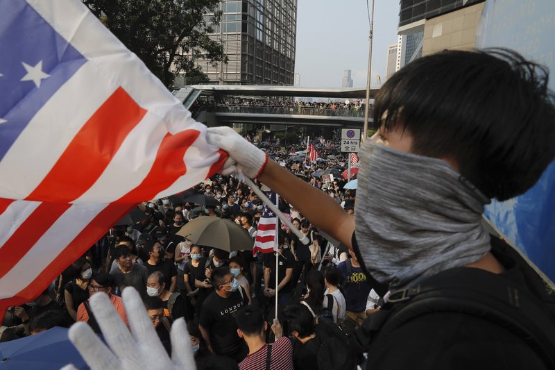 Protesters on Sunday urged Washington to pass a bill, known as the Hong Kong Democratic and Human Rights Act, to support their cause. The bill proposes sanctions against Hong Kong and Chinese officials found to suppress democracy and human rights in the city, and could also affect Hong Kong’s preferential trade status with the U.S.