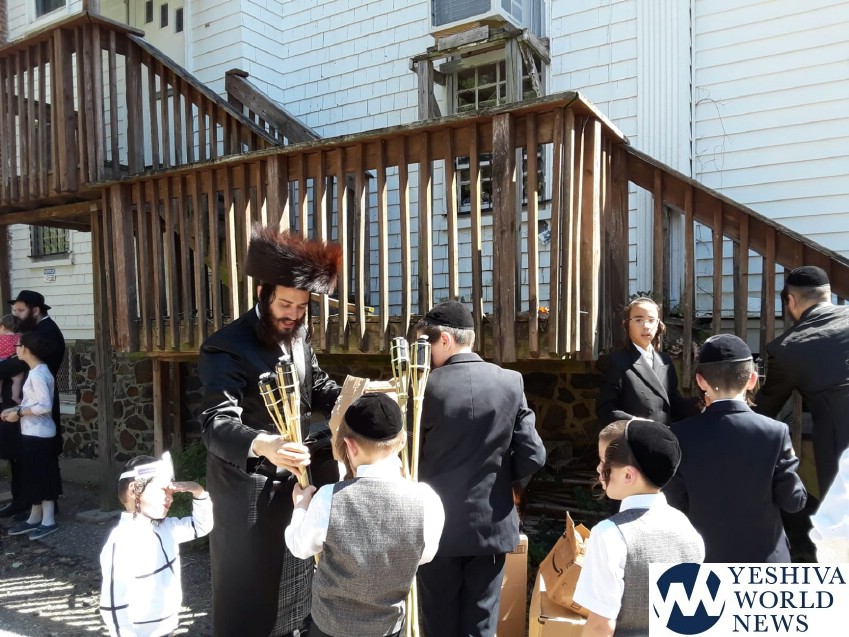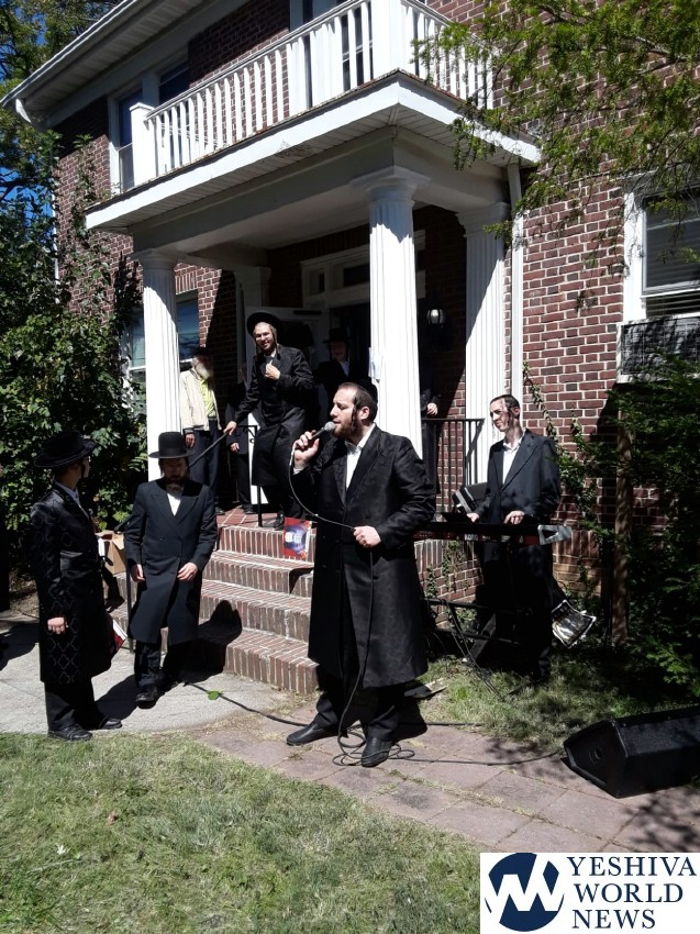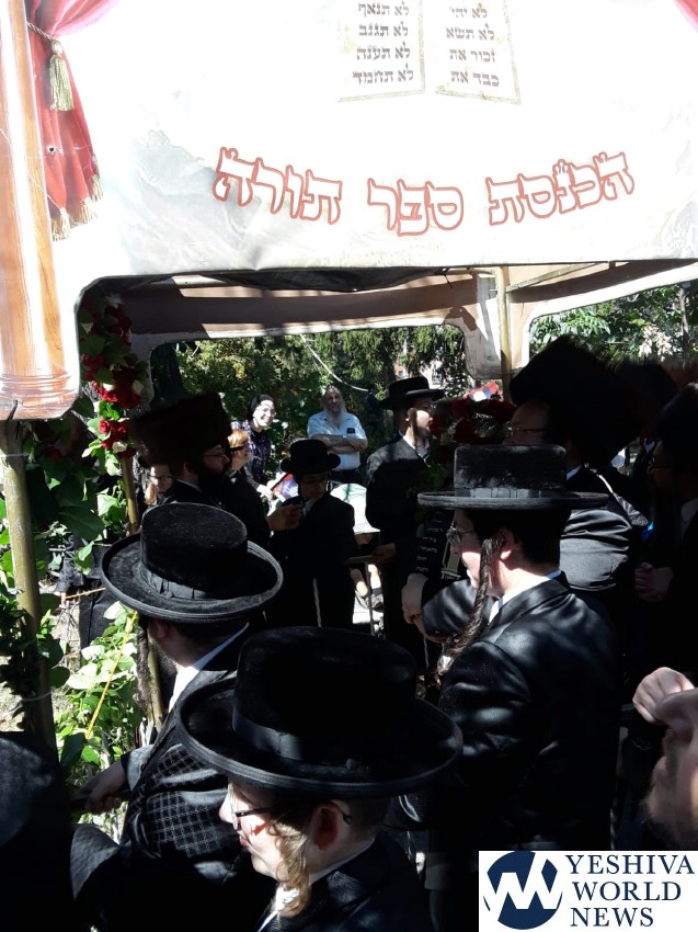 While the final letters of the new sefer Torah were being written in the Taubs’ home with the Brider Rebbe, Rav Shaye Taub, the Rebbetzin and her daughters and granddaughters – who traveled from various parts of New York, by car and chartered bus with their families – enjoyed hot kugel, salad, and desserts in the small shul with women from throughout the community, Anticipation mounted, as we came outside and heard a chassidishe singer sing heartfelt niggunim on the