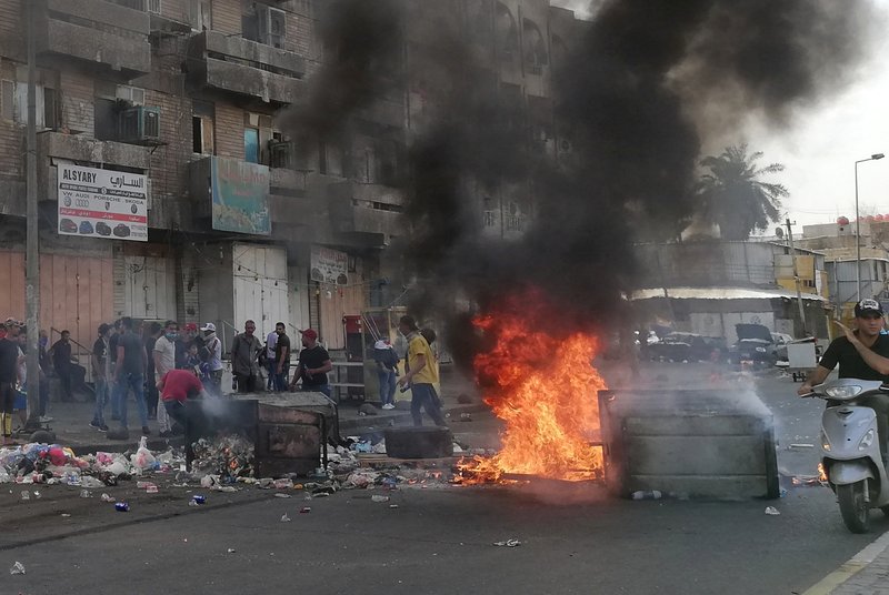Groups of protesters continued to take to the streets, some of them calling for toppling the government. Thick black smoke hung over the city as demonstrators set fire to tires and garbage containers. Bursts of heavy gunfire could be heard intermittently. At night, protesters closed the road leading to Baghdad’s airport with roadblocks and burning tires, keeping the way into the city open for arrivals.