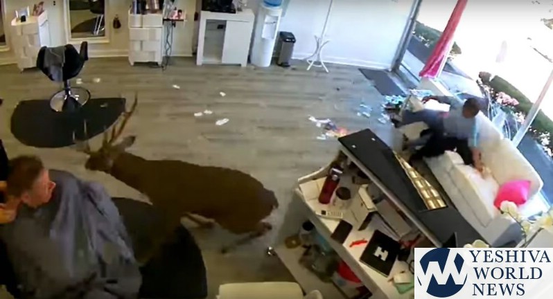 Police said one client suffered leg and head pain and was treated at a hospital. The security video shows the deer jumping over the woman’s head as she sits on a couch at the front of the shop.