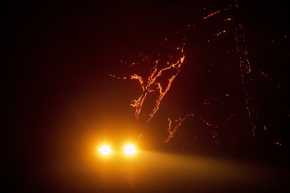 The cause of the blaze was not yet known, but wildfire risk was extremely high as humidity levels plunged and winds gusted up to 70 mph (113 kph). There were no immediate reports of any injuries.