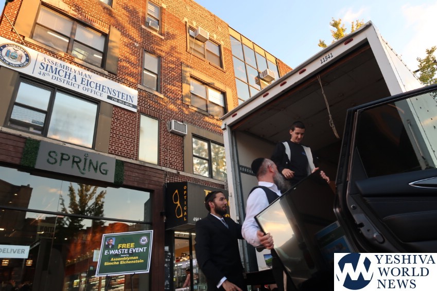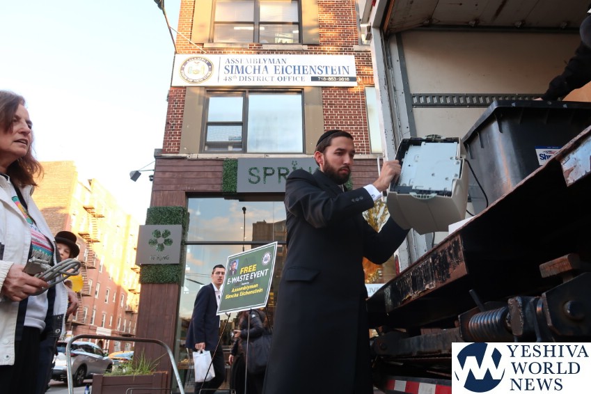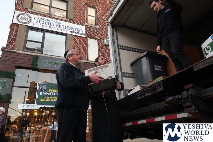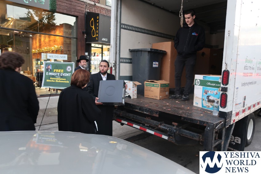 Hundreds of local residents turned out to participate in two free events hosted by Assemblyman Simcha Eichenstein as a service to his constituents. On Monday, October 28, over 125 residents of Borough Park and Midwood took advantage of the opportunity to dispose of their e-waste, and on Wednesday October 30, over 150 people came to the Assemblyman’s Borough Park office to avail themselves of the free paper shredding event. Both events were held as a service to the community free of charge.