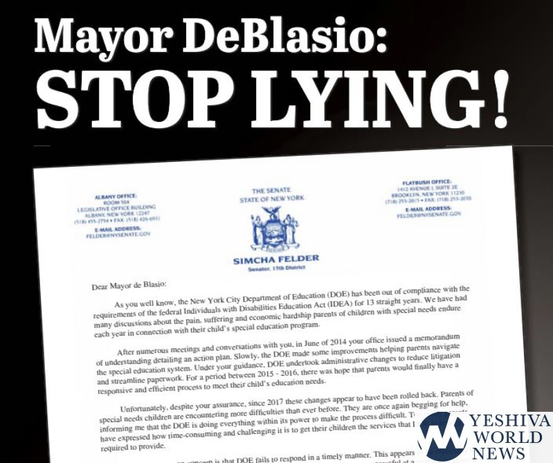 “In 2014, the Mayor held a press conference where he laid out his commitment to ‘reduce litigation, streamline paperwork, and ensure parents have a responsive and efficient process to meet their child’s special education needs,’ “these are the Mayor’s words and we are holding him to them,” Senator Felder told YWN.
