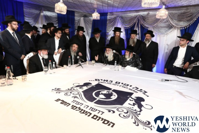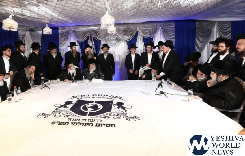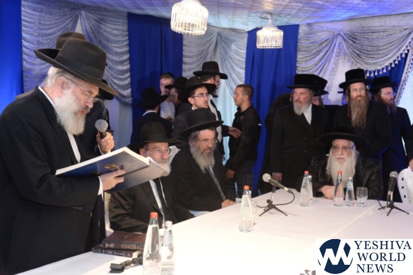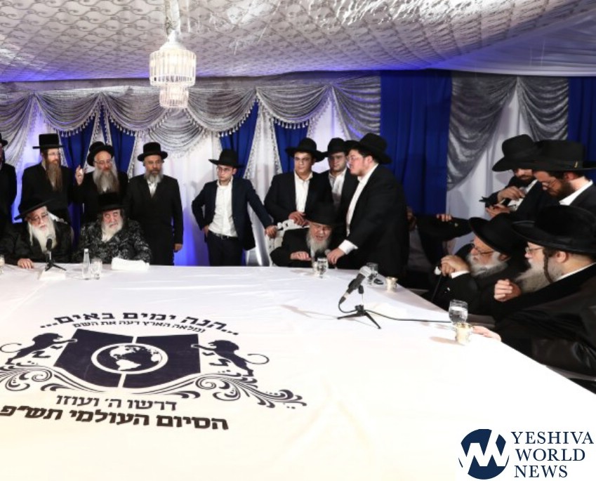 The siyum was attended by HaGaon HaRav Berel Povarsky, shlita, Rosh Yeshivas Ponovezh, the Vizhnitzer Rebbe, shlita, HaGaon HaRav Boruch Mordechai Ezrachi, shlita, Rosh Yeshivas Ateres Yisrael, the Sanzer Rebbe, Hagaon Harav Dovid Cohen, shlita, Rosh Yeshivas Chevron and the Modzhitzer Rebbe, shlita.