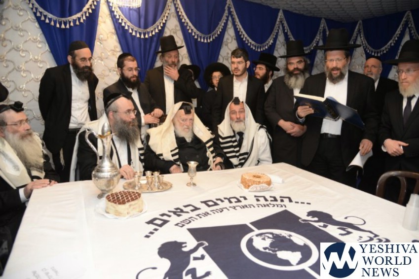 An inspiring siyum held earlier this month at the home of HaGaon HaRav Chaim Kanievsky, shlita, was the first of the many siyumim that will be held by Dirshu as they celebrate the Dirshu World Siyum with massive siyumei Shas in large Jewish Centers. The siyumim to be held in stadiums from Yerushalayim and Tel Aviv, to Manchester, Paris, Johannesburg and more, will culminate in the grand finale of the world siyum at the Prudential Center and NJPAC in Newark, NJ, where the accomplishments of the lomdei Dirshu will be hailed and publicly recognized.