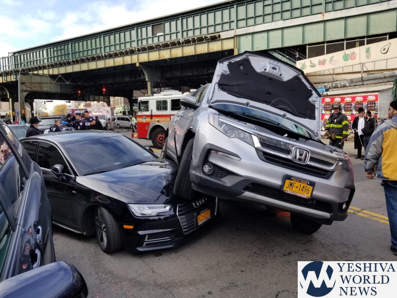 A wild crash in Boro park resulted in just minor injures on Wednesday morning.