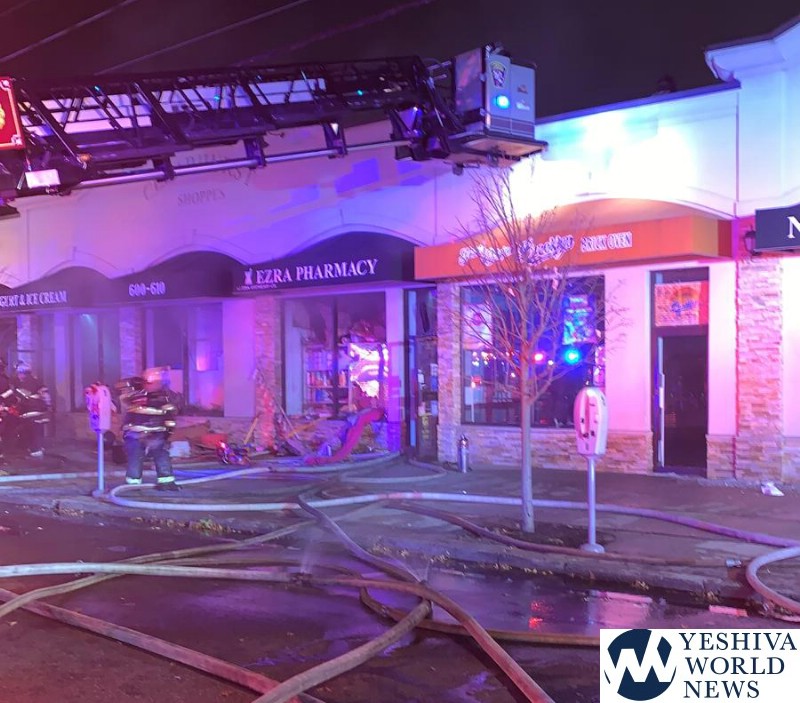 The fire quickly spread through the basement to all the stores, destroying a restaurant, pizzeria, ice cream shop, pharmacy and cleaners, almost all are Jewish-owned businesses which service the community. Among the stores destroyed were Mikes Burgers, Josh’s Pizza, Ezra Pharmacy and a dry cleaners.