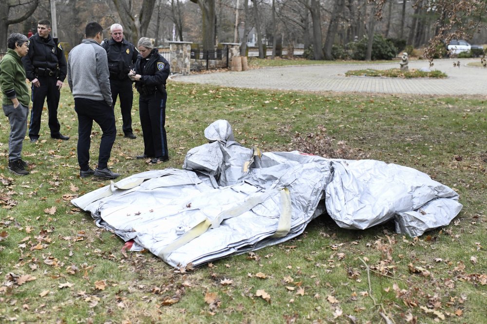 A Delta Air Lines spokeswoman tells the Boston Herald that the uninflated slide fell from a flight from Paris to Boston around noon Sunday.