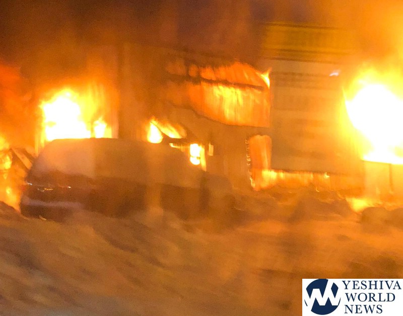 The fire is reportedly started inside a bus mechanic shop for the Bnai Yoel School.