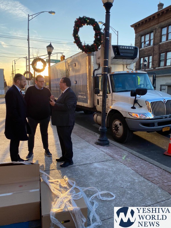 “It’s a real privilege for me to run the largest tzedakah in America. Boruch Hashem, we do amazing things every day,” said David Greenfield. “No other organization can pack, deliver and distribute 10,000 pounds of kosher food overnight. Today, however, was a special day. It was a true kiddush Hashem. We’re especially grateful to Mayor Steven Fulop for his leadership and sensitivity to the needs of his kosher constituents.”
