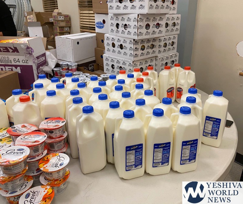 At around noon on Thursday, one of five Met Council trucks left the Met Council warehouse with five pallets of food and stopped in Boro Park at KRM to pick up the fresh Oneg Shabbos food before making their way to Jersey City.
