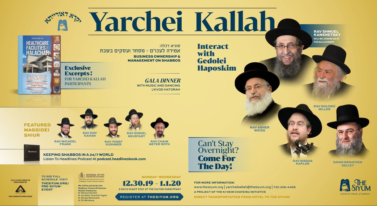 For more information about the Yikra De’oraysa Yarchei Kallah, visit www.thesiyum.org or email [email protected]. Space is limited, so be sure to act now.