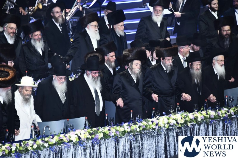 From the first special moment of the event, the night promised to be a chain of memories for the taking. From the dais (colorful bouquets of flowers placed along the entire length) filled with an impressive array of Gedolei Yisroel – all there to pay tribute to the Torah accomplishments of Klal Yisroel, – there was a feeling that something momentous was taking place.