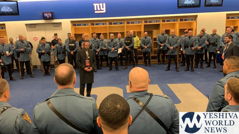 UPDATE 10:35AM: Rabbi Abe Friedman, Chaplain of the NJ State Police delivering a briefing to hundreds of Troopers who are about to be deployed all around Metlife Stadium. Hear him explaining the sensitivity that they should have as the tens of thousands enter the stadium – as many of the people have never been in a stadium before.