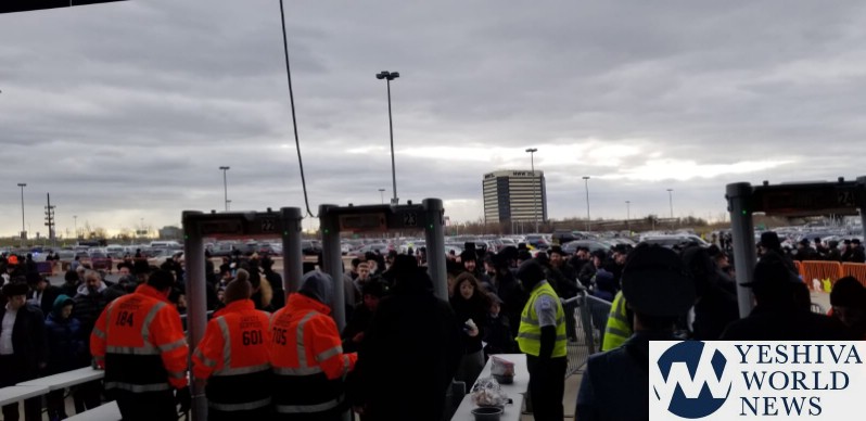 UPDATE 5:40PM: Thousands davening Maariv at MetLife led by Hagaon HaRav Eliezer Ginsburg.