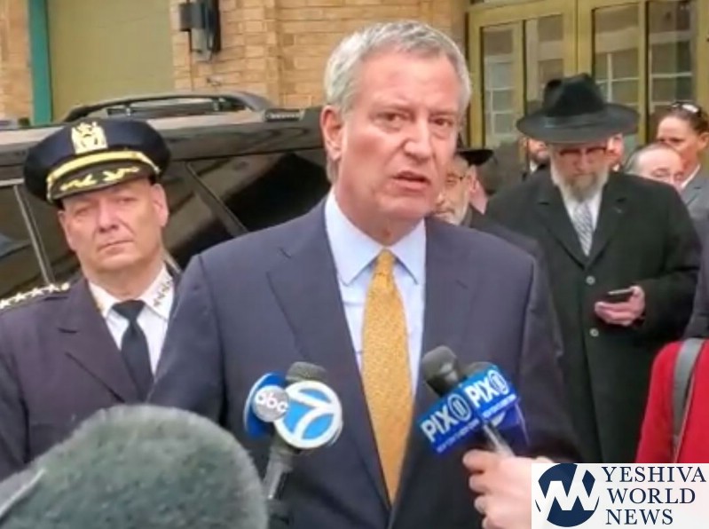 Ironically, the mayor was just three blocks away – at the Boro Park Hatzolah Headquarters on 37th Street and 14th Avenue – where he was meeting with Jewish community leaders to discuss the more than 14 hate crimes that have occured in the past two weeks.