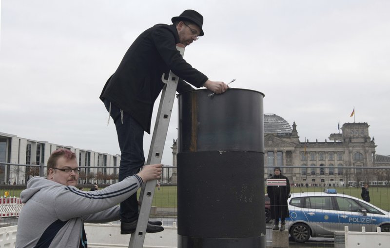 A group calling itself Performance Art Committee said about 20 of its members attempted to cut down a pillar holding an urn that was placed in front of the German parliament by the left-wing Center for Political Beauty last month.